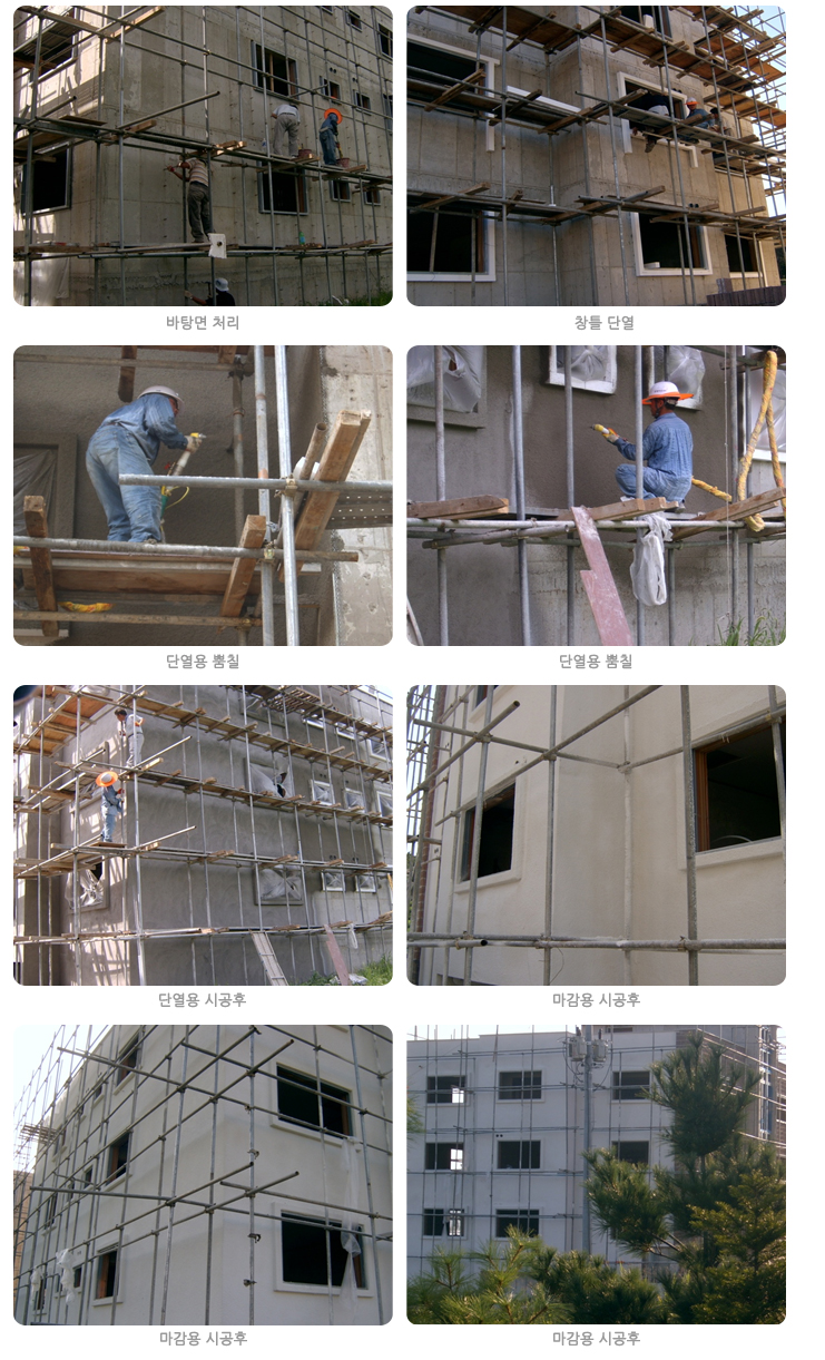 방지 단열 신공법의 제품으로 단열성, 내구성이 우수하고, 기존 단열재의 가장 큰 문제점인 불연성을 실현한 환경친화