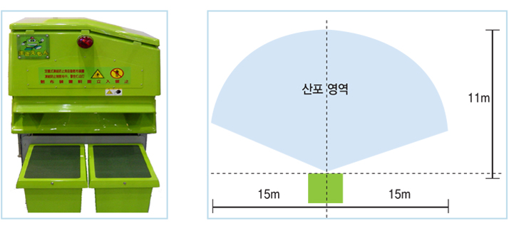 표준산포량 30g/㎤(1회 산포시 / 최대 2kg) |